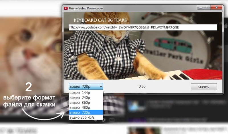 - Скачивать аудиодорожки отдельно от видео (для загрузки музыки, подкастов, аудиокниг);