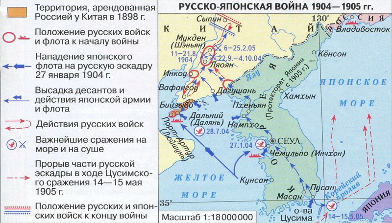 - Россия передала Японии в аренду Ляодунский полуостров и Порт-Артур.