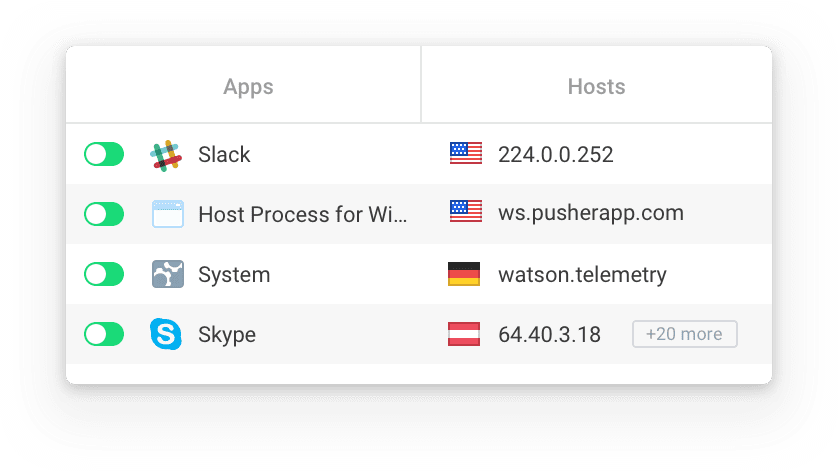 Detect spyware, malware, badly behaving apps, and bandwidth hogs, then block their connections.