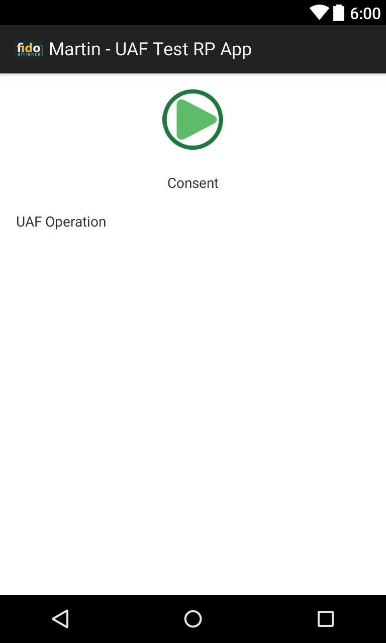 FidoUAFActivity. Нажмите кнопку «Согласен» для выполнения определенных команд (Auth, Reg, Dereg).