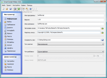 Smart Install Maker — мощная и удобная программа для создания инсталляторов. Обладает простым и интуитивно понятным интерфейсом, а также полным набором необходимых функций для создания профессиональных инсталляторов с минимальным размером, высокой степенью сжатия файлов и приятным интерфейсом. Поддерживают превосходный формат сжатия Cab, что позволяет создавать действительно компактные дистрибутивы. Помимо стандартного минимума, Smart Install Maker позволяет редактировать системный реестр и INI-файлы, создавать программные ярлыки, запускать ассоциируемые и исполняемые файлы, регистрировать новые шрифты и ActiveX компоненты, отображать тексты информации и лицензионного соглашения. Также, с помощью этой утилиты, вы сможете создать мультиязыковые инсталляторы с поддержкой более 20-ти популярных языков мира.