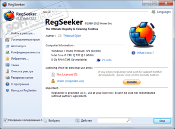 Стоит сразу отметить, утилита весит довольно мало, не требует установки, имеет мультиязычный интерфейс, только вот Русского среди нет, это конечно не радует, надеюсь разработчик подумает над этим и поправит ситуацию. Так вот возвращаясь к делу, RegSeeker легко найдет и исправит все имеющиеся ошибки в реестре Windows. Вы сможете проводить поиск по реестру нужного вам ключа, можно управлять автозапуском и установленными приложениями, можно создать свой избранный список ключей, можно просто удалить из реестра мусор, можно создавать резервные копии ключей и потом их восстанавливать.