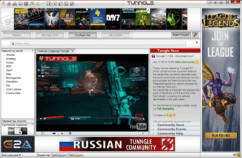 По умолчанию сразу после авторизации открывается окно сообщества Тангл, здесь Вы можете найти себе компанию для игры по сети, получить помощь в решении проблем, посмотреть обучающие видео о работе с программой и т. д.